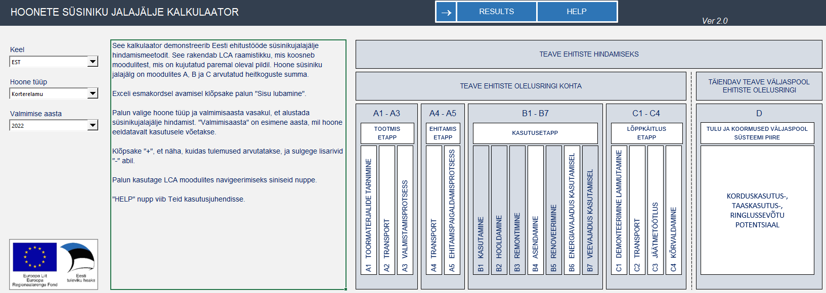 The method is demonstrated using a simple CO2 calculator which provides an estimate of the life cycle CO2 emissions of construction works. The project was commissioned by the Estonian Ministry of Economic Affairs and Communications and co-financed by the RITA programme.